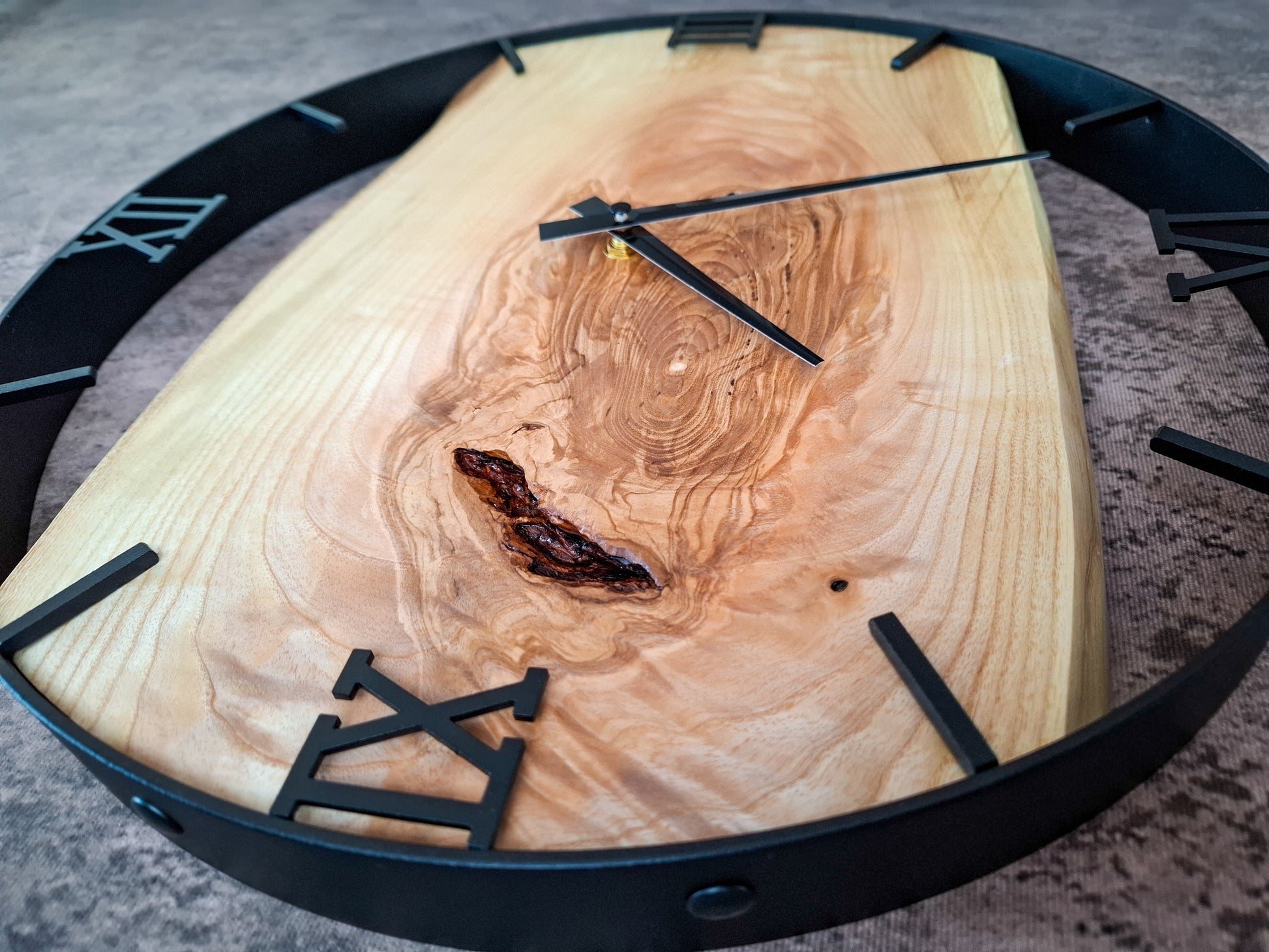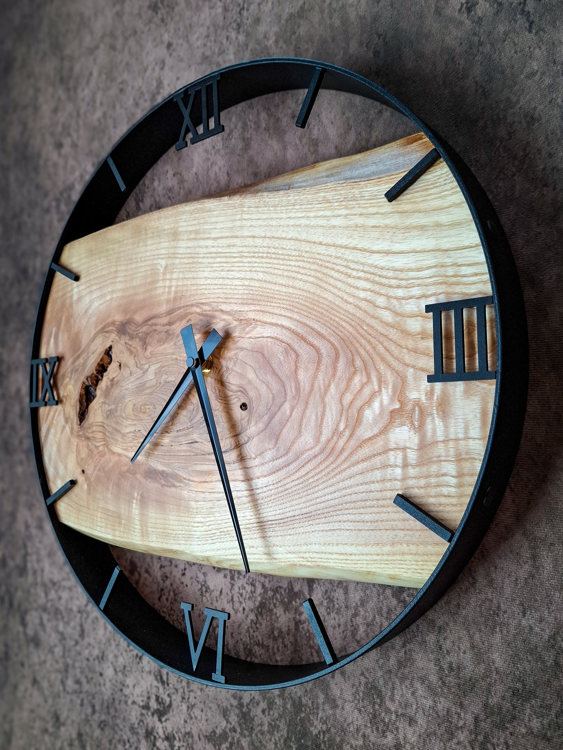 Dieser elegante Wanduhren kombiniert die natürliche Schönheit von Eschenholz mit einer modernen Metallrahmenstruktur. Das Holz, das mit seiner klaren Maserung und warmen Tönen besticht, verleiht dem Raum eine einladende Atmosphäre. Der robuste Metallrahmen umgibt das Holz sanft und sorgt für einen stilvollen Kontrast. Mit einem minimalistischen Design und einem präzisen Uhrwerk ist dieser Zeitmesser nicht nur funktional, sondern auch ein echtes Kunstwerk, das jedes Interieur bereichert.